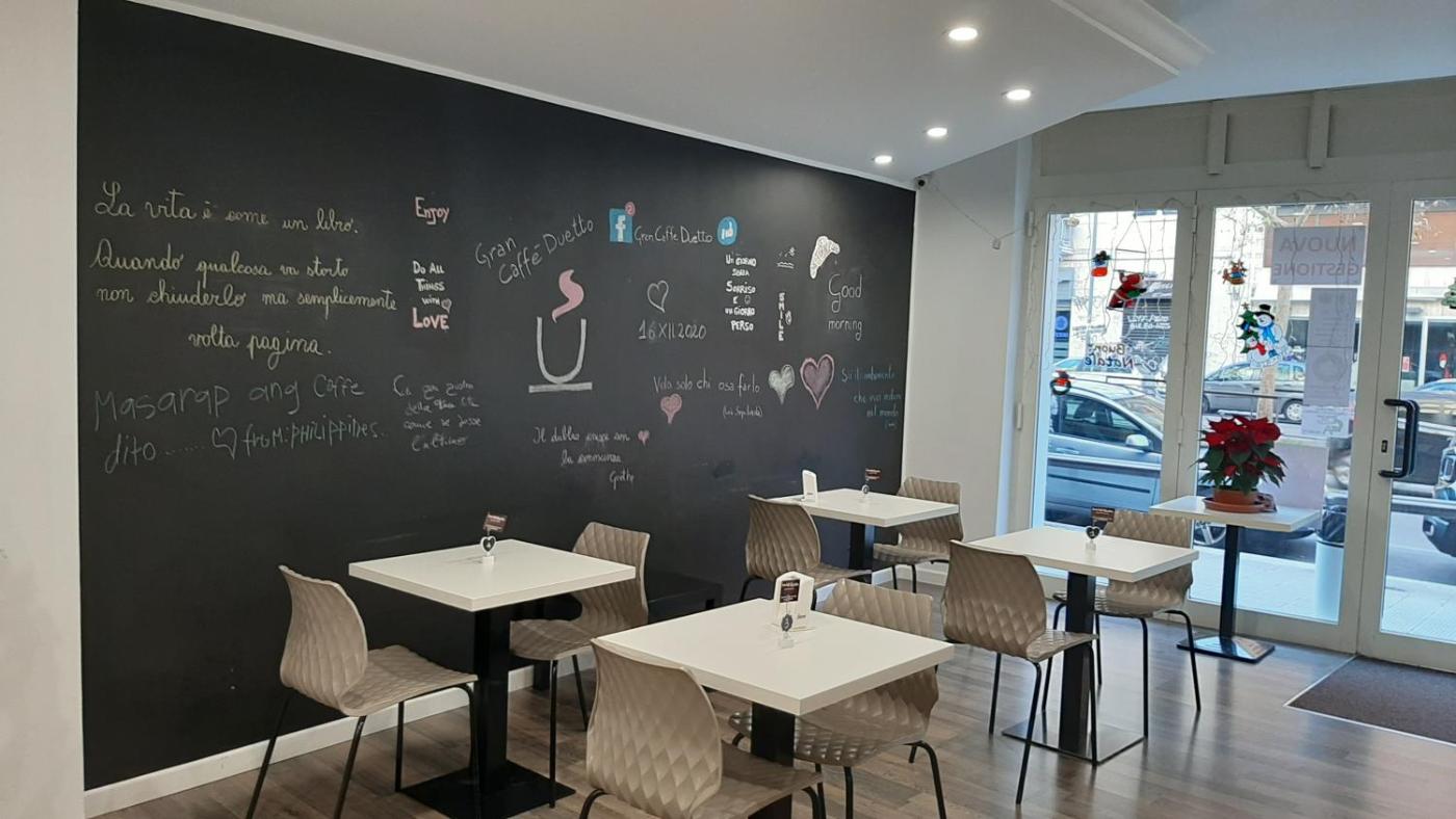 There is a coffee shop and bar.