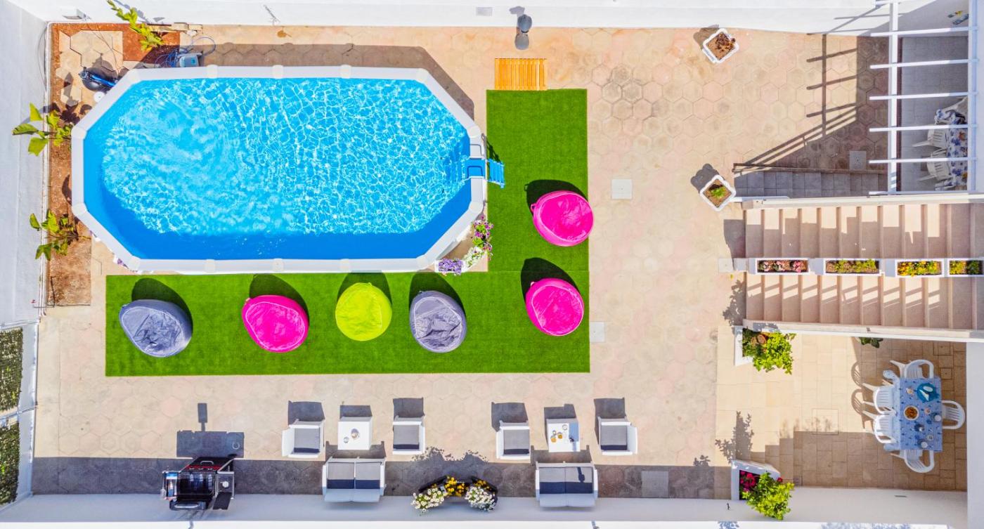 Standard Apartment. This apartments special feature is the pool with a view. Featuring a private entrance, this air-conditioned apartment consists of 1 living room, 2 separate bedrooms and 2 bathrooms with a shower and a bidet. Guests will find a stovetop, a refrigerator, kitchenware and an oven in the kitchen. The apartment also offers a barbecue. A seating area with a flat-screen TV, a washing machine and a patio are provided in this spacious apartment. The unit offers 5 beds.