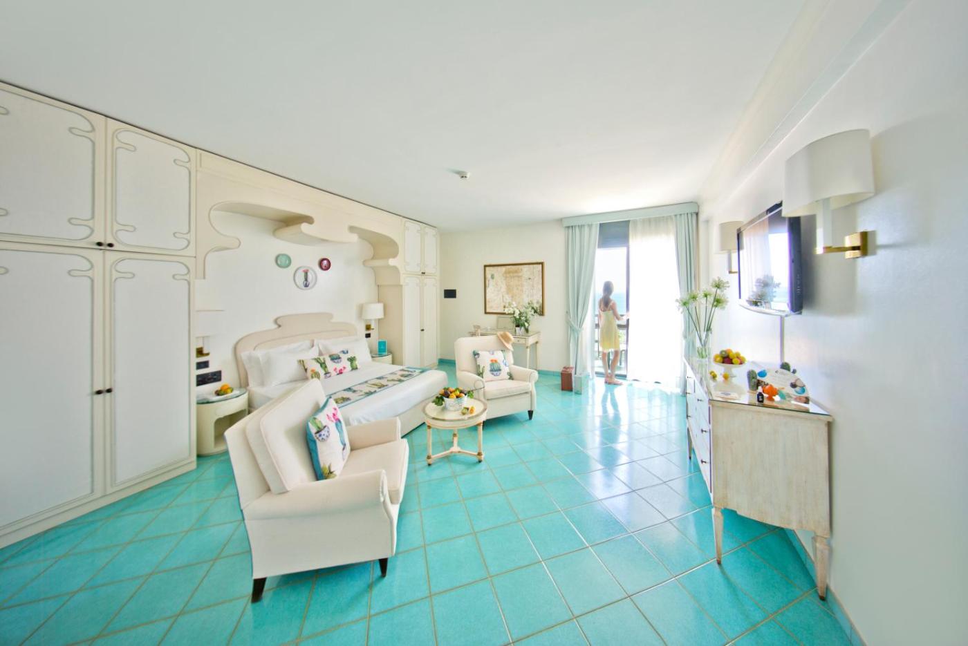 Rooms here have a classic and elegant design with air conditioning and a private balcony. Each one has a TV with satellite channels and a minibar. Many overlook the sea.