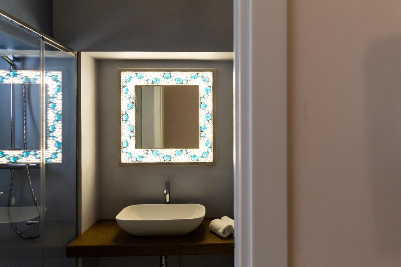 Double Room with Terrace. Providing free toiletries and bathrobes, this double room includes a private bathroom with a walk-in shower, a bath and a bidet. The air-conditioned double room provides a flat-screen TV, a private entrance, soundproof walls, a minibar as well as city views. The unit offers 1 bed.